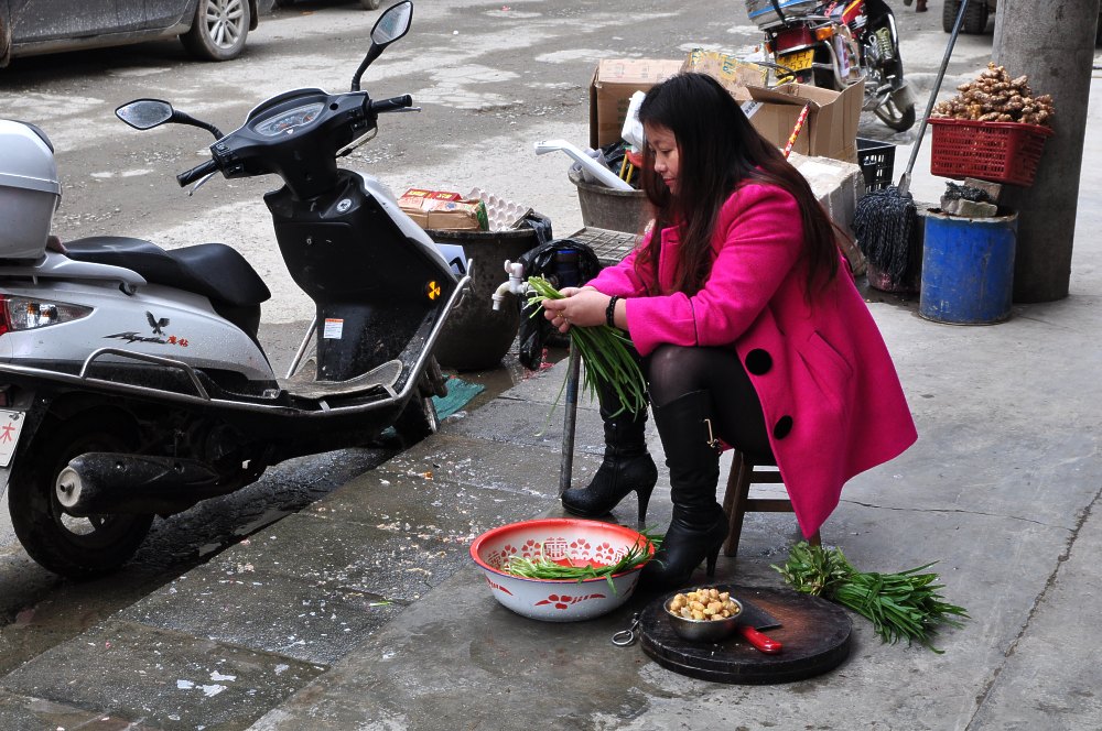Au fait, pourquoi les serveuses préparent-elles les légumes sur le trottoir ? Regardez bien, la réponse est sur la photo.