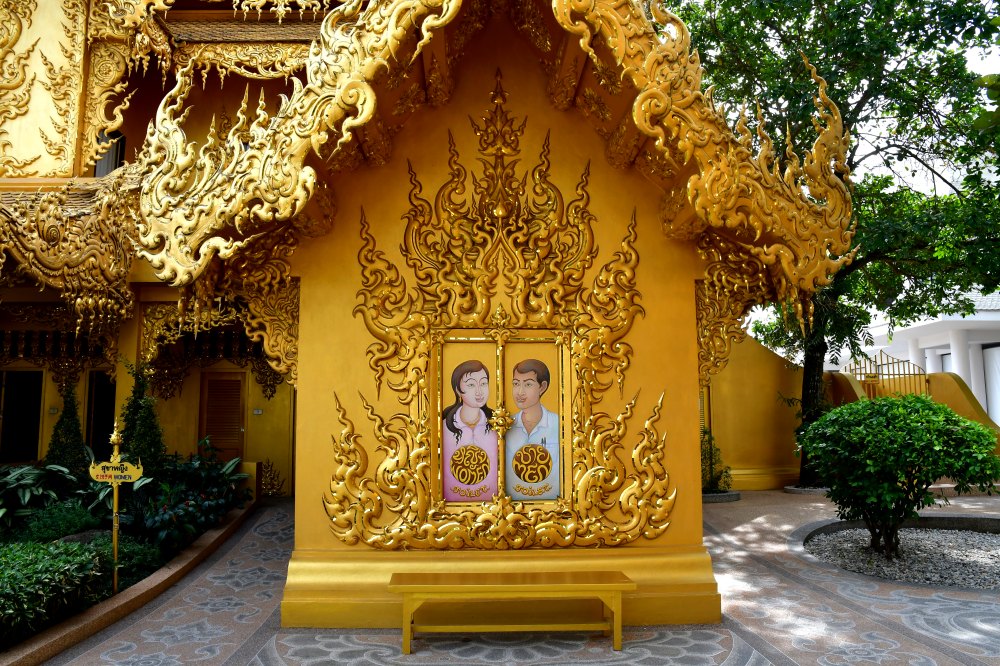 Si le temple est blanc, les toilettes sont couvertes "d'or" selon le vœu de l'artiste.