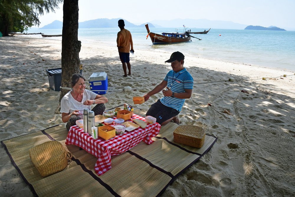 Pique-nique sur la plage avec James notre guide qui a vécu quatre ans en France.