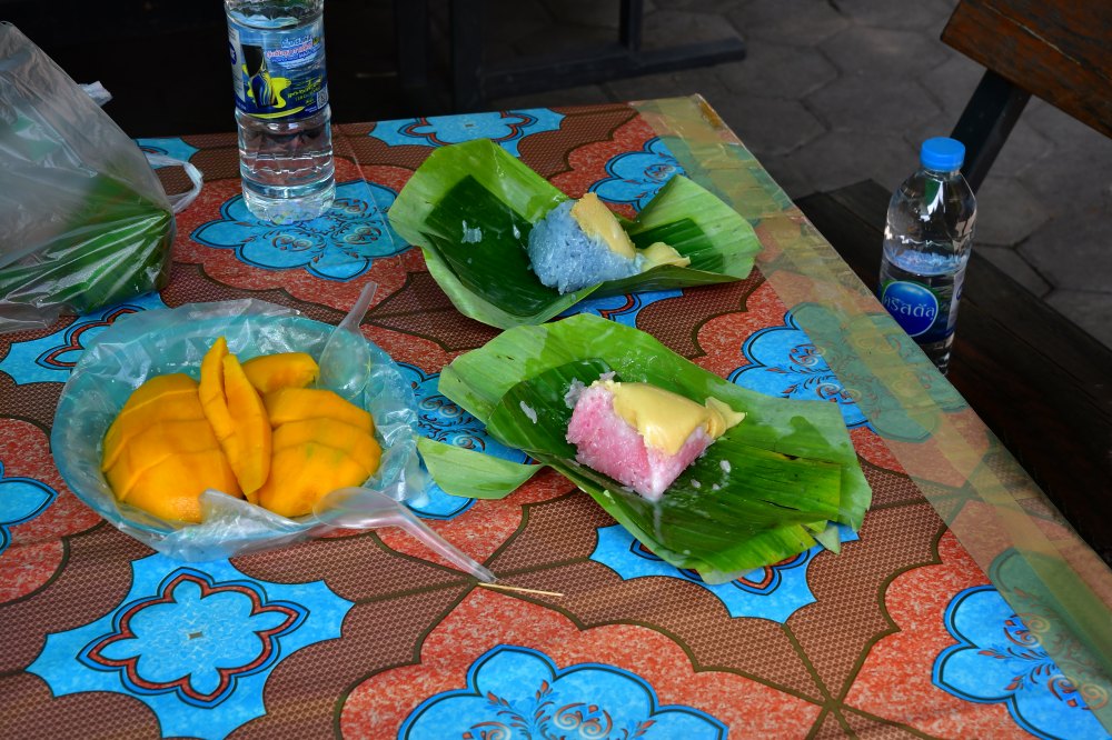 Notre guide de Chiang Mai nous emmène pour une randonnée à vélo. Celle-ci commence au marché où il acheté de quoi manger à midi.