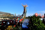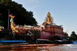 De part et d'autre du fleuve c'est une suite de chantiers. Construction d'hôtels et de casinos par des investisseurs chinois, côte laotien. Sur la rive birmane on a également construit un casino. Nous nous en approchons en bateau mais on ne débarque pas. Côté thaïlandais on fourbit des armes culturelles. Un bouddha tout neuf brille de mille feux. On résiste au mercantilisme, pour l'instant.