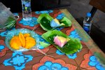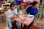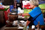 Nous ne sommes pas de gros mangeurs mais nous aimons goûter à tout. Ceci nous a, par le passé, causé quelques déboires aussi sommes nous devenus prudents. Et, en Thaïlande, il est prudent de toujours demander "Est-ce piquant ?" à une personne impartiale car les Thaïlandais adorent le piment "petit et fort". Grâce à cette philosophie, et avec l'aide de nos guides, nous avons essayé les plats proposés sur les marchés, la cuisine de rue et les spécialités locales "soft".