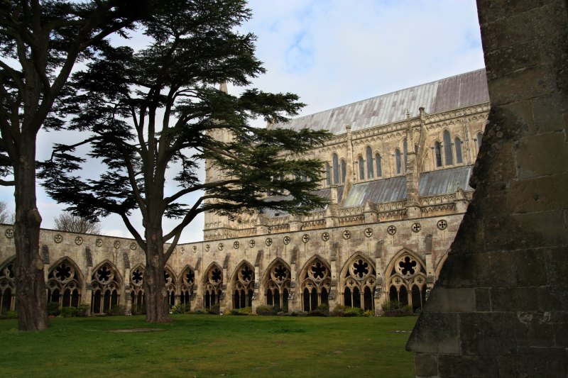 The Salisbury Cloisters which are the largest in England were used as a prison at the time of the Civil War. The cedar trees were planted in 1837.