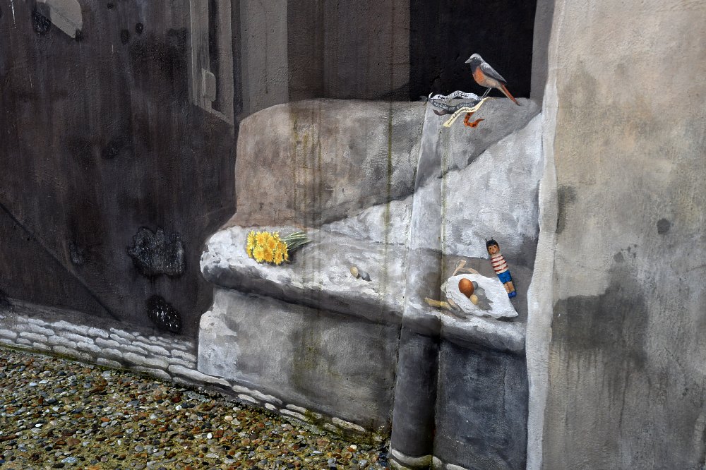 Détail du mur du trompe l'œil de Terrasson.