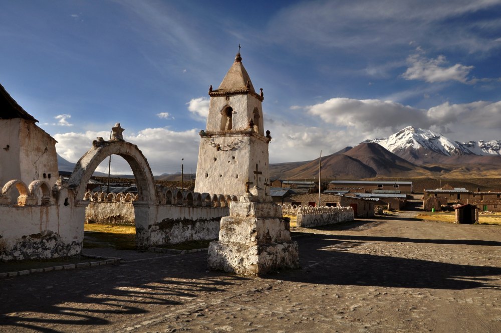 Isluga se trouve à une altitude de 3500m. L’église en adobe du XVIIème siècle et son clocher sont entourés d’un mur d’enceinte dans le style des missions catholiques de l’époque et que l’on retrouve avec quelques variantes dans tous les villages de l’Altiplano.