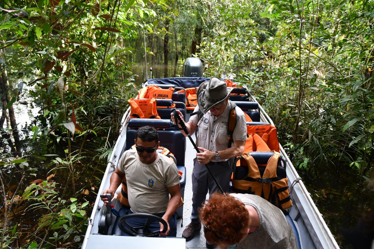 Après s'être frayé un chemin en annexe au milieu des arbres et des lianes, nous débarquons sur la terre presque ferme...