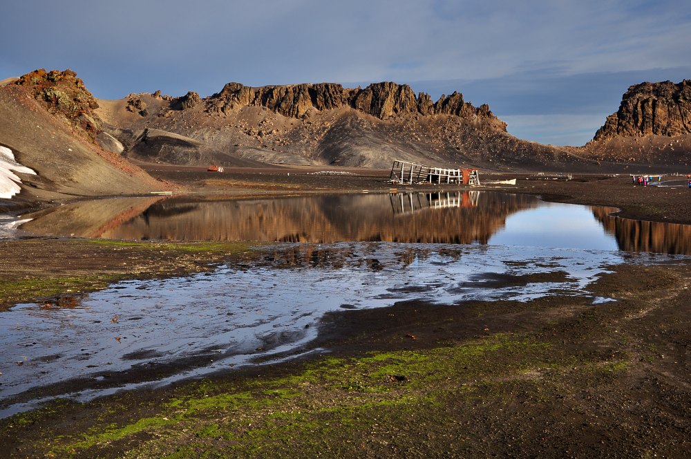 Vue sur les "aiguilles de machine à coudre" et des restes d’installations abandonnées lors de l’évacuation définitive de 1970.