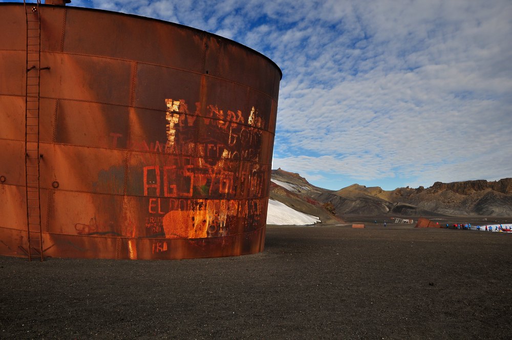 A cause de sa forme et de la protection offerte par la caldeira pratiquement fermée (l’entrée ne fait que 250m de large avec au milieu une profondeur de seulement 2,50m) l’île devint l’escale et le refuge de tous les baleiniers de l’Antarctique. En 1914, 13 navires y étaient officiellement basés.