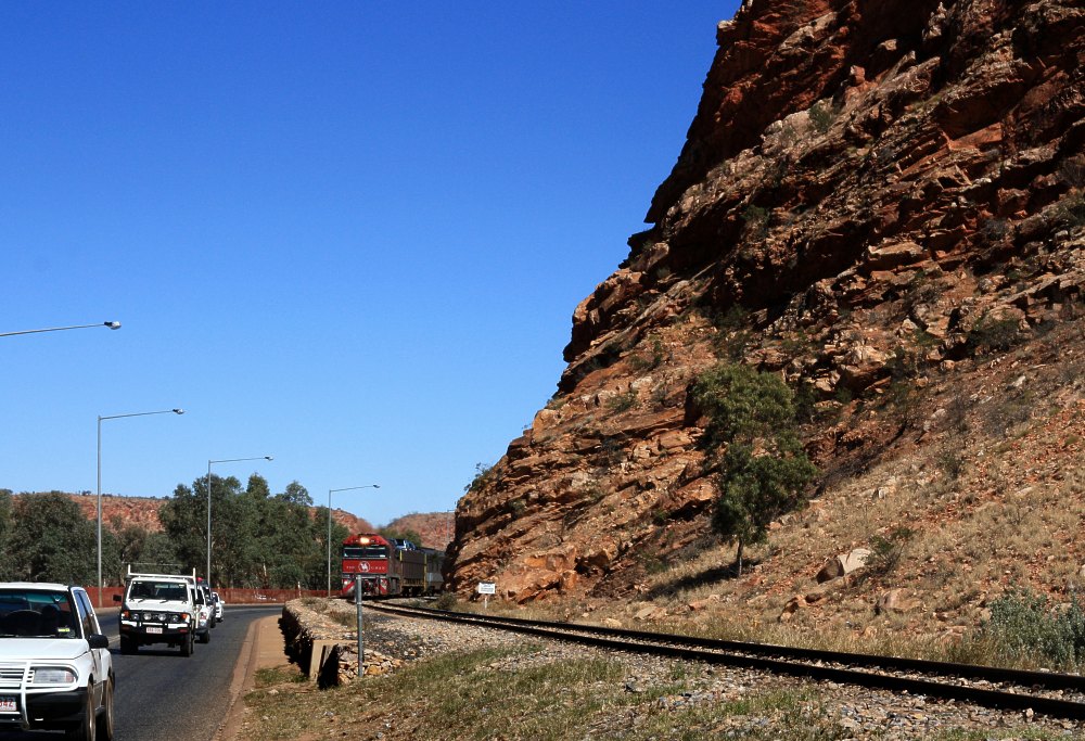 The Ghan going through Heavitree Gap.