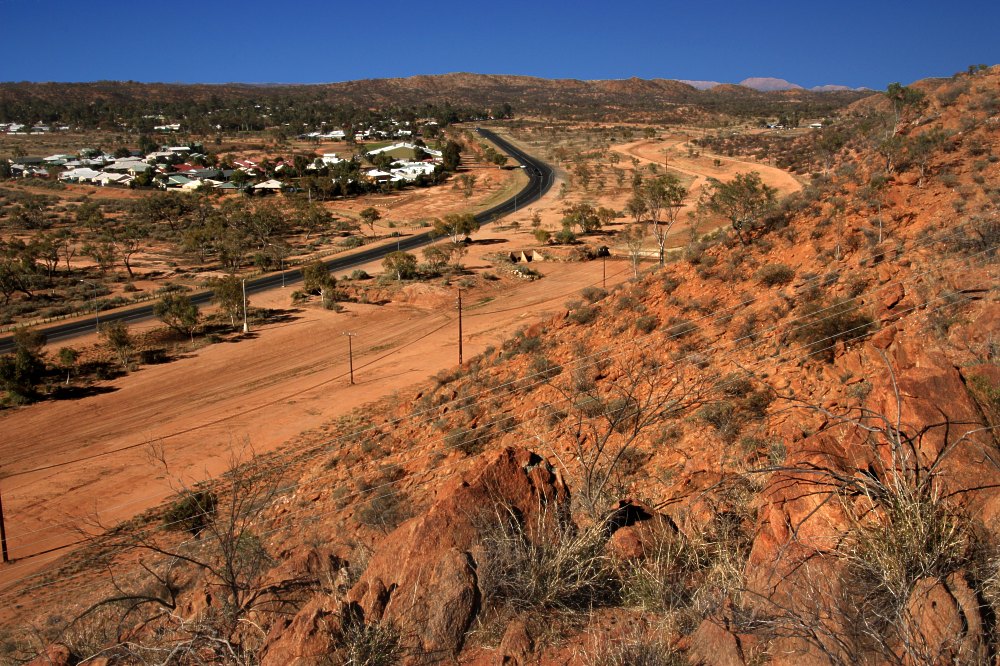 The Stuart Highway seen from Anzac Hill in Alice Springs.