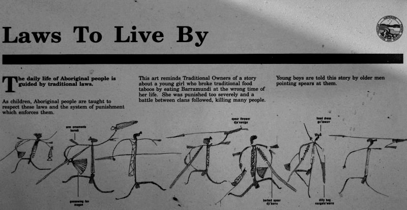 This art reminds of a story about a young girl who broke traditional food taboos by eating barranundi (a fish) at the wrong time of her life. She was punished...