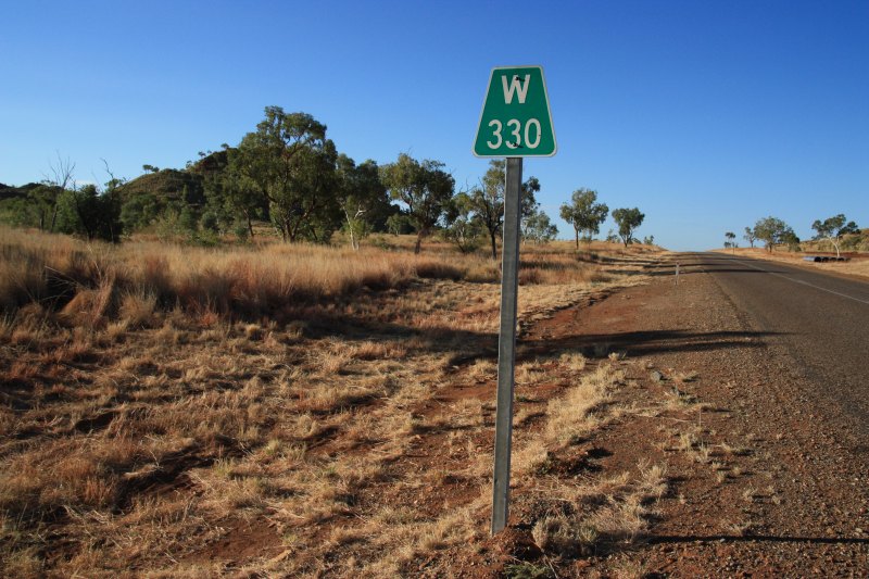Indication of the distance to the next town. The letter W means the town of Windham is 330 Kms away.