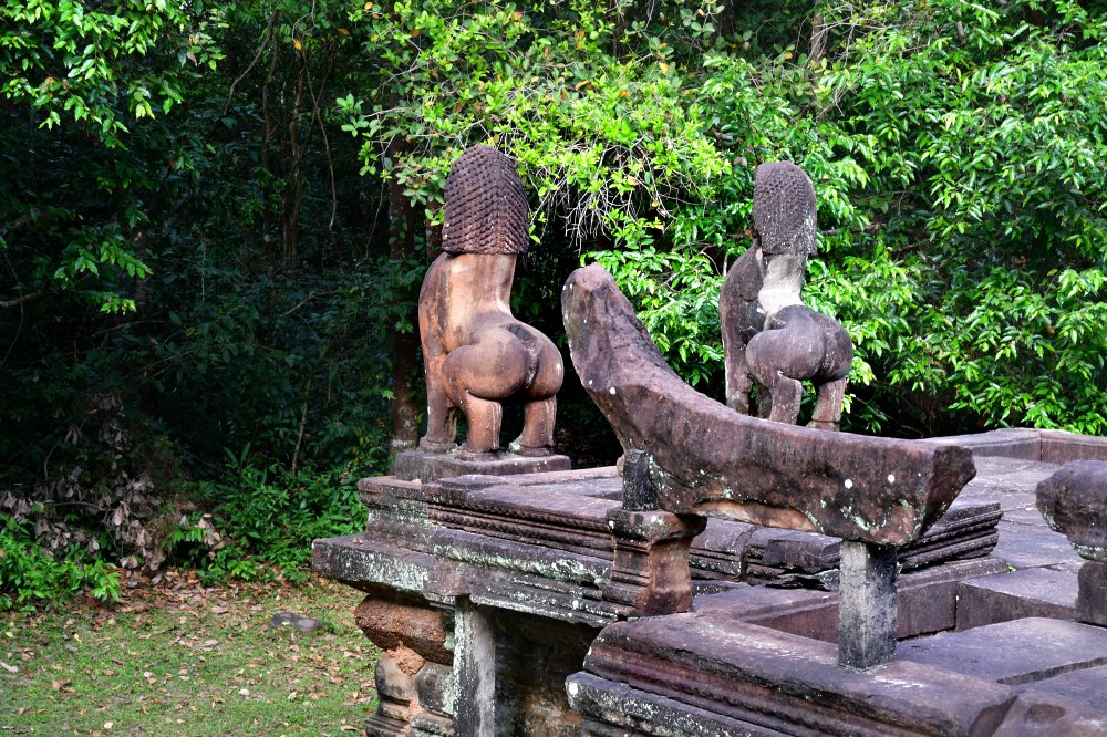 Quelques traces de la balustrade en naga au-dessus des anciennes douves.