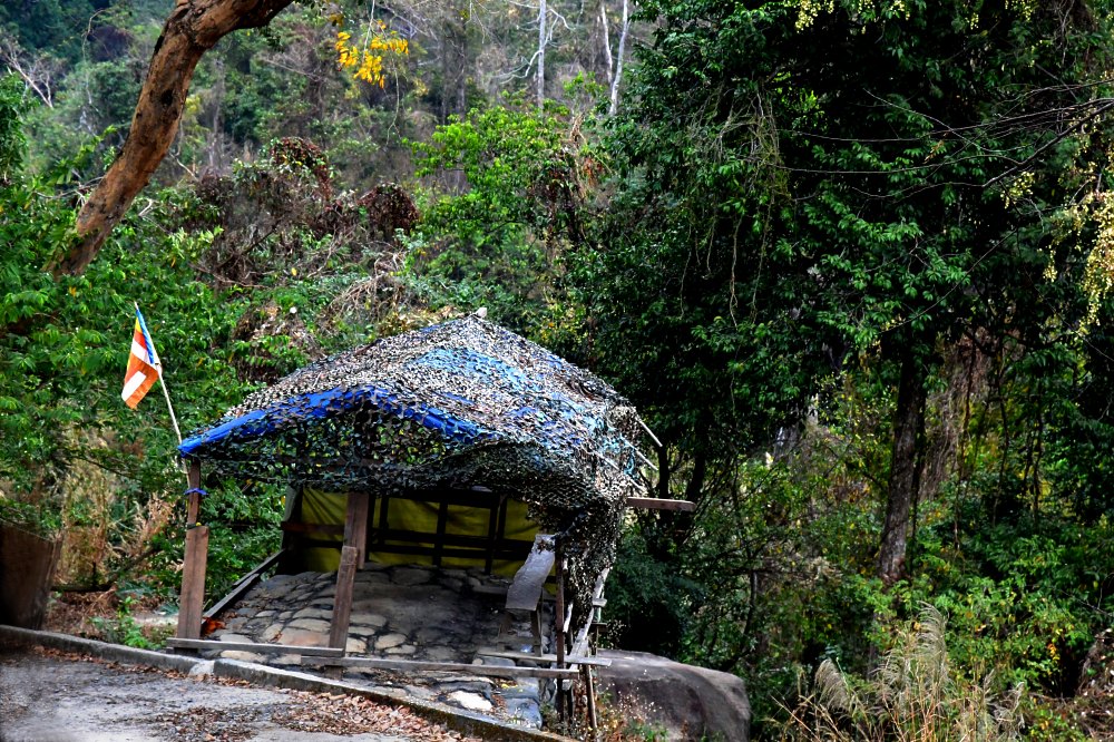 Les abris des garde frontières jalonnent le bord de la route. Le temple a été officiellement attribué au Cambodge en 1904 mais les forces thaïlandaises ont occupé les lieux lors de l'indépendance du Cambodge, en 1954.