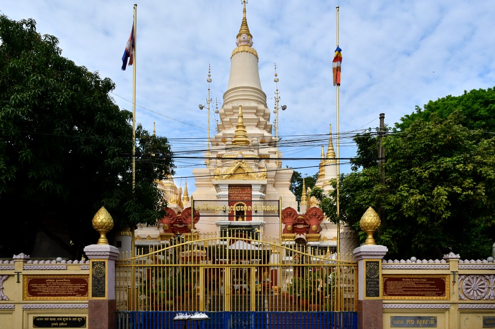 Stupa contenant des reliques de Bouddha dans la pagode Botum Vatey, pagode des fleurs de lotus. C'est une des cinq pagodes historiques de la ville même s'il ne reste rien des bâtiments d'origine.
