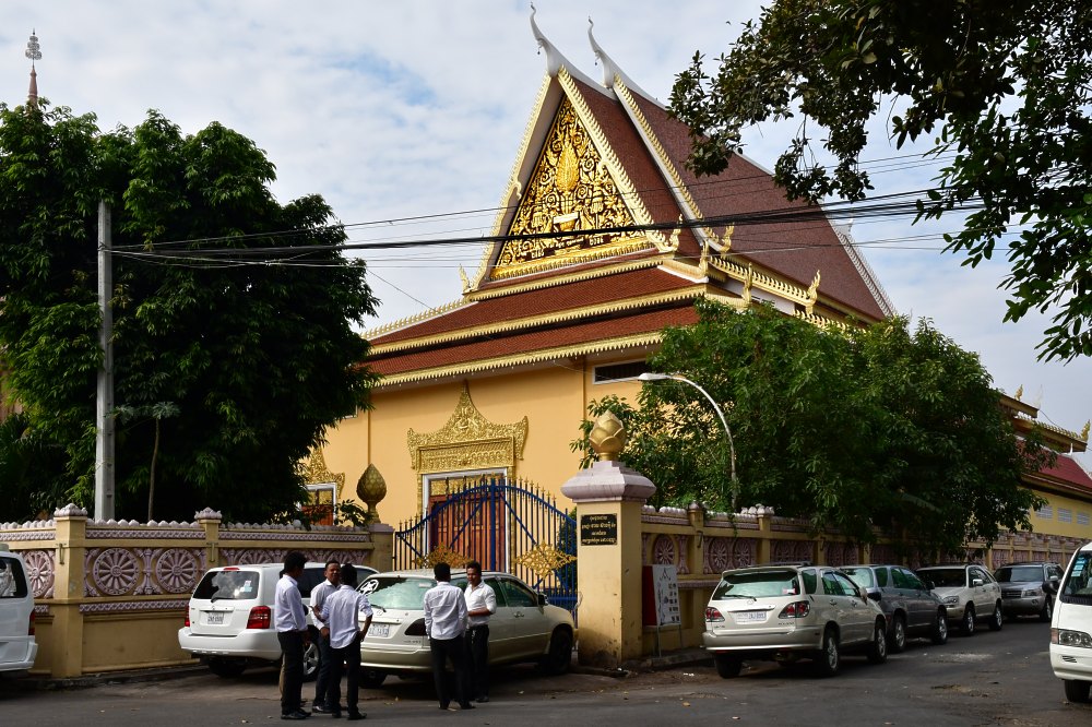 Architecture typique de l'art Khmer d'un pavillon dans l'enceinte de la pagode des fleurs de lotus.