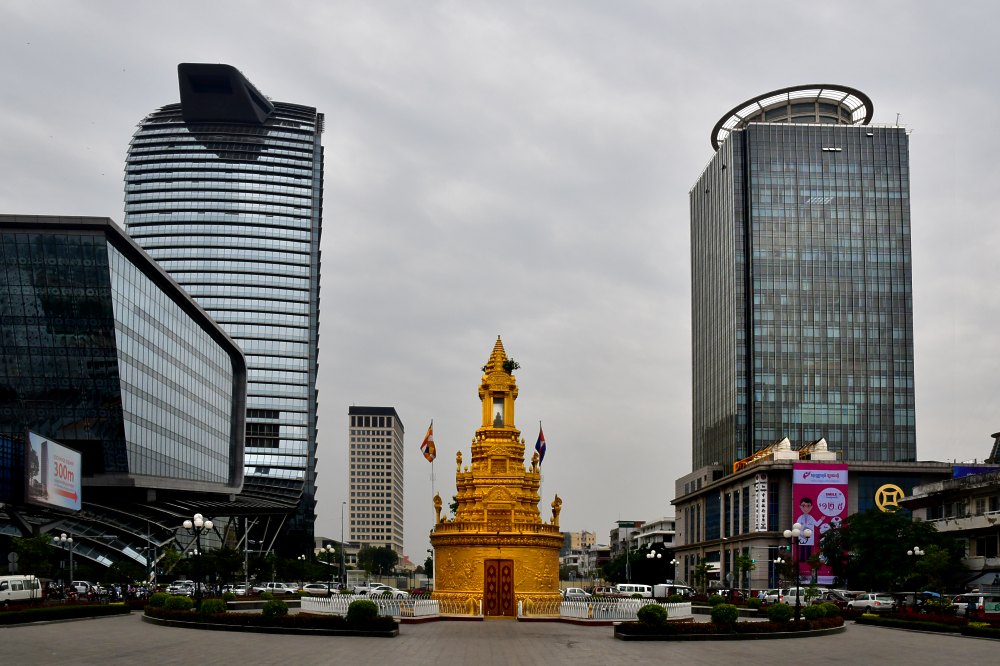 Face à la gare, le moderne et l'ancien entrent en concurrence. Les tours Vattanac et OCIC témoignent du renouveau économique du pays.