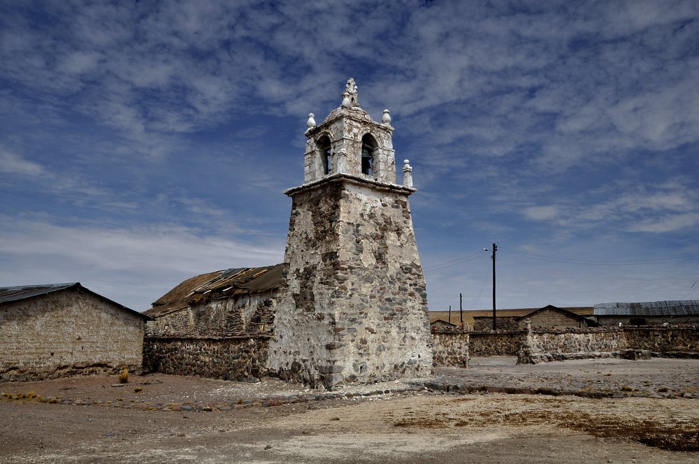 La vieille église en ruine du XVIIème siècle et son campanile.