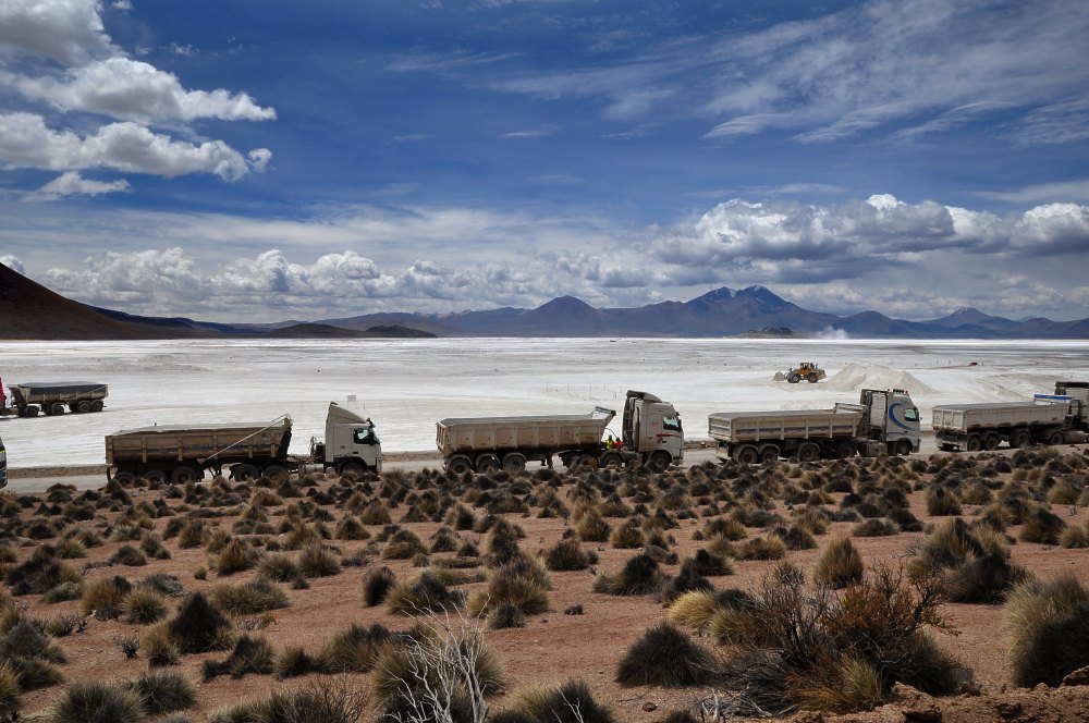 Train de camions attendant d’être chargés.