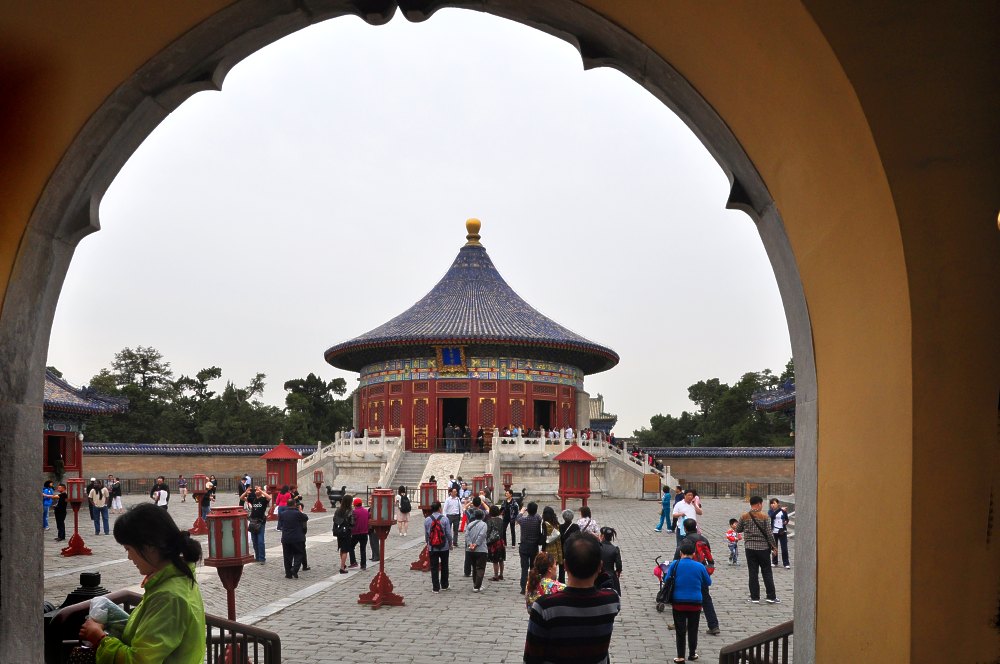 Le temple du Ciel fut construit en 1420 soit juste après la fin des travaux fondateurs de la Cité Interdite. Le projet était alors gigantesque puisque la surface occupée était exactement le double de celle de la Cité Interdite, résidence de l’empereur. Cette démesure avait une raison : il s’agissait de transposer sur terre la cosmologie céleste, source suprême de la légitimité impériale.