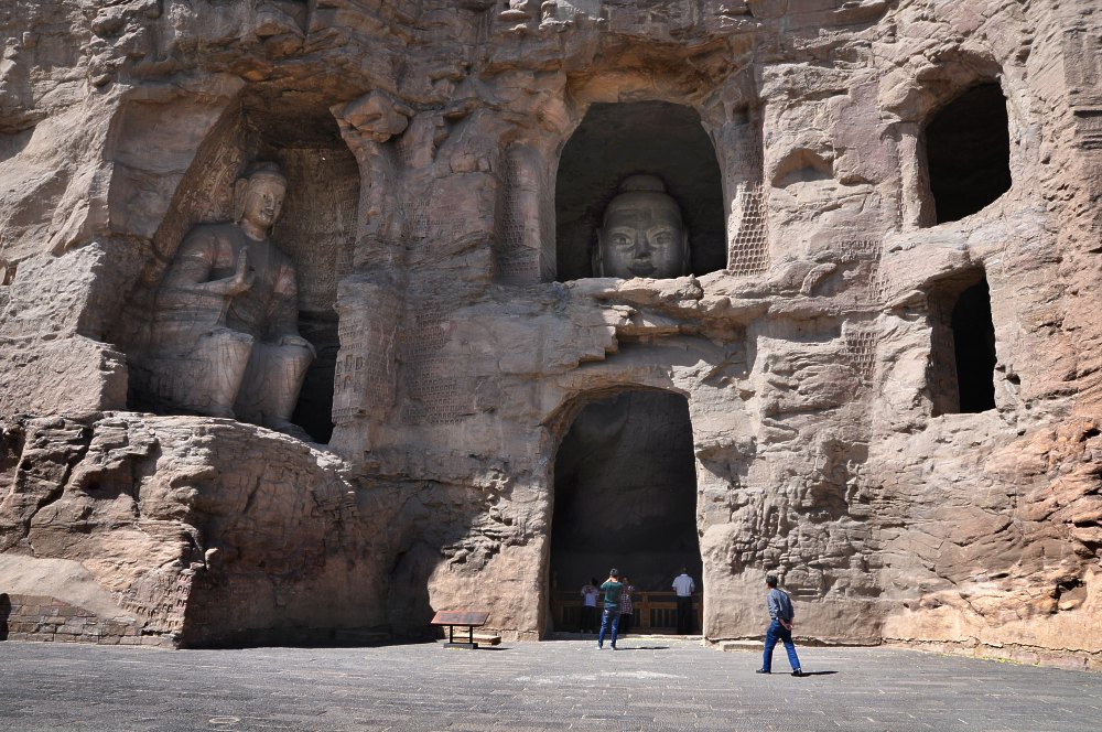Les falaises ont été petit à petit "évidées", laissant les statues dans une sorte de prison.