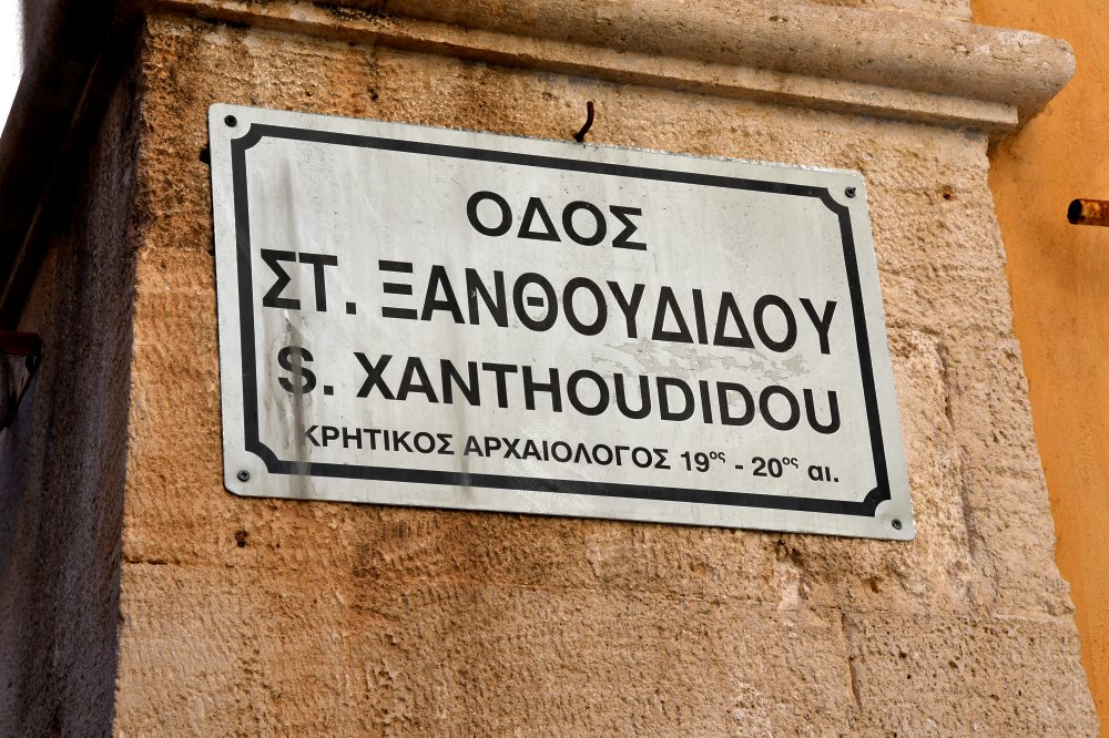 Un célèbre archéologue crétois, comme indiqué sur la plaque. Pour l'anecdote, une des rues les plus importantes de la ville est la rue... Jules Vernes.