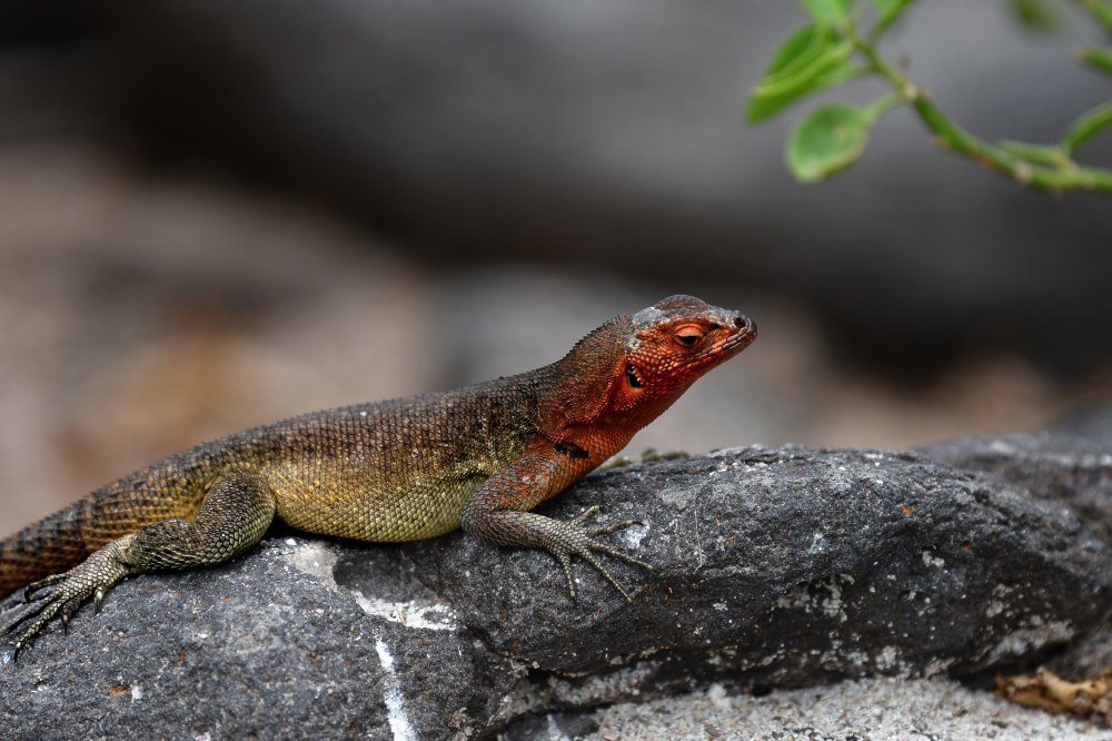 Femelle de lézard des Galápagos reconnaissable à sa gorge rouge.