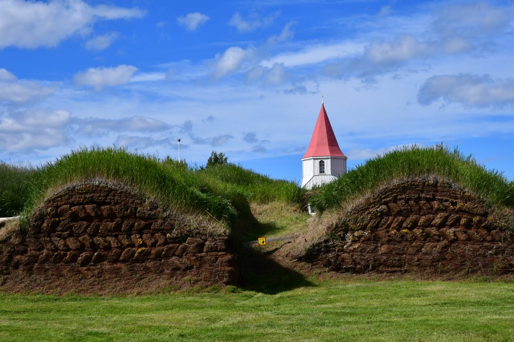 8h, 9° mais il a fait très frais cette nuit. Soleil et nuages. Nous lavons de nouveau le camion, surtout le bas de caisse. Tour de la péninsule de Vatnses, pas de phoques mais des sternes très agressives. Rocher de Hvitserkur, très beau canyon de Kolugljufur avec une suite de cascades spectaculaires où nous pique-niquons sous le soleil, en t-shirt. Petit détour par l'église de pierre de Thingeyrar avant d'arriver à Blönduos et son église en forme de volcan. Relavons le fourgon. Une Américaine nous demande : "C'est vraiment gratuit?". Eh oui, en Islande pour faire pipi c'est 500kr mais pour laver son véhicule c'est gratuit. Il faut dire que c'est souvent nécessaire! Visite de la ferme musée de Glaumbaer, très intéressant.