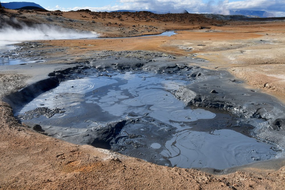 8h45, il fait beau. Partons vers l'est et le secteur géothermique en passant par le col de Namaskard. Hverir et ses chaudrons de boue, secteur de Krafla avec le cratère et les champs de lave du Leirhnjukur, tour du cratère du Viti aux eaux bleu pâle sous un vent fort. Pique-niquons près d'une douche chaude en plein air au milieu de ... rien. Dettifoss, surprise : l'eau est grise sous l'écume qui se détache en rideau. Selfoss est moins impressionnante mais tout aussi intéressante. Malheureusement le soleil a disparu. Courses au Samkaup-Strax de Reykjahlid pour les jours à venir.