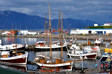 7h30, 13°5, Soleil voilé. Relavons le camion, gonflons les pneus après quelques tâtonnements pour trouver le tableau en bars. Husavik sous le soleil est très différente de ce que nous avons vu l'année dernière. Courses au Netto : beaucoup de choix, ce qui n'est pas toujours le cas.