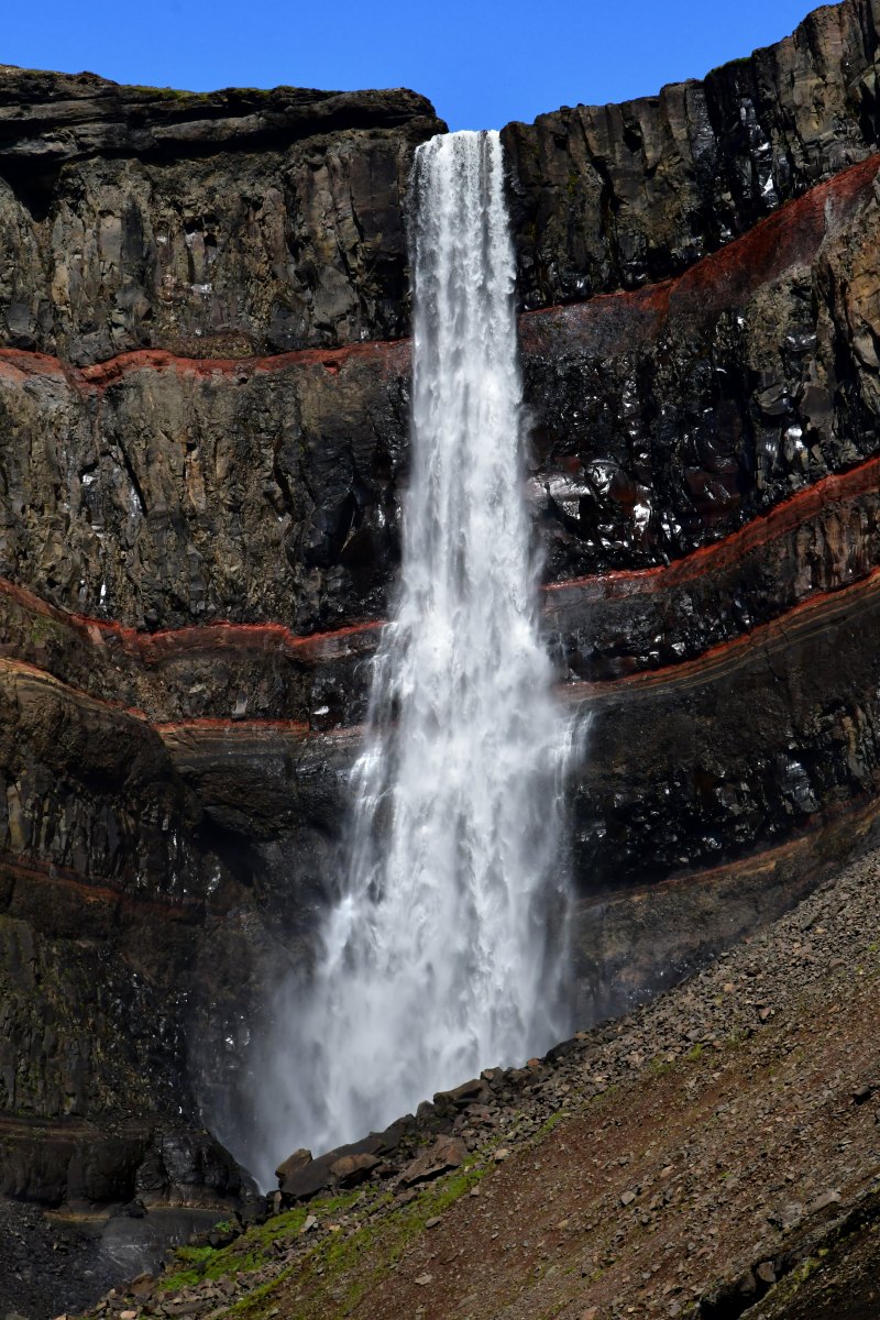 Hengifoss, au bord du lac Lagarfljot, au sud d'Egilsstadir.