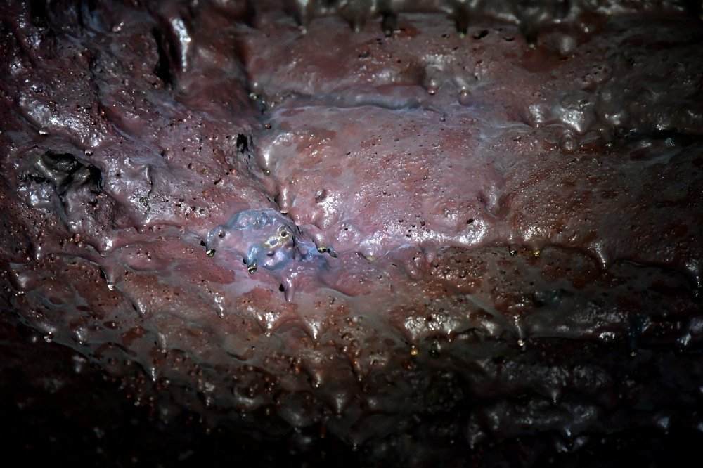 Par endroit, le plafond est constellé de petits pics de lave dont la progression verticale s'est arrêtée en raison de la viscosité et du refroidissement rapide.