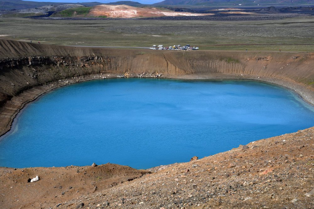 Large de 300 m, le cratère d'explosion est apparu en 1724 au début du cycle d'éruption des Feux de Myvatn.