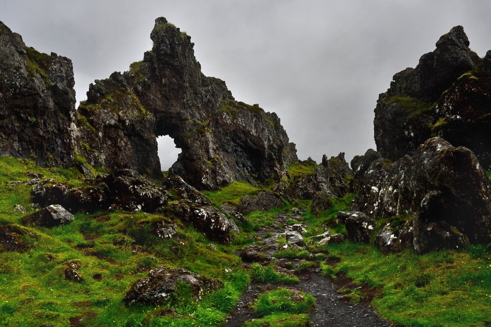 Au sud-ouest de la péninsule un sentier mène aux plages de Djupalon et Dritvik. On descend vers les plages en longeant des formations rocheuses très érodées dont l'arche de Gatklettur.