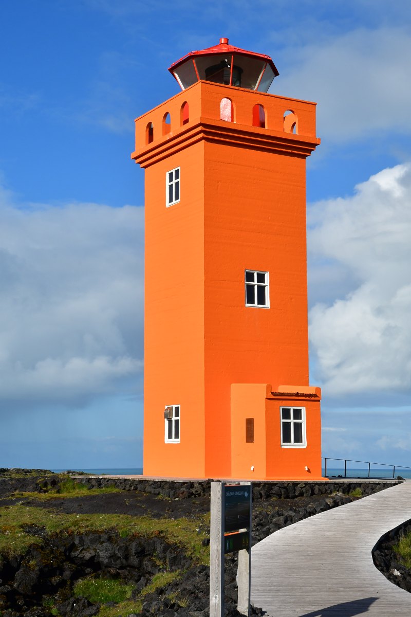 Le phare domine les falaises de Saxholsbjarg où nichent de nombreux oiseaux.