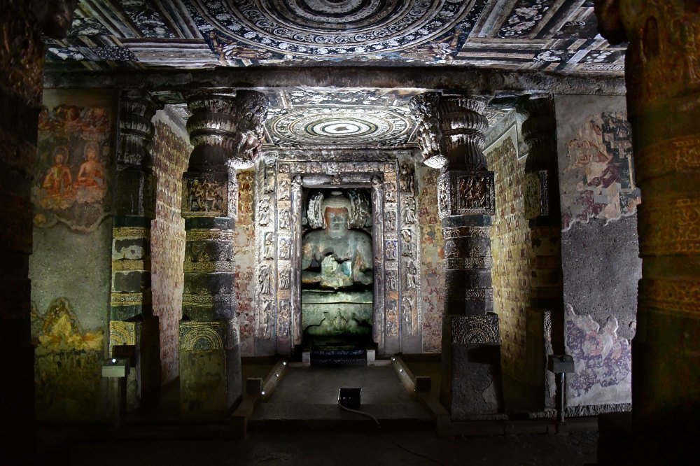 Le sanctuaire principal de la grotte 2 possède de magnifiques plafonds peints avec des motifs géométriques.