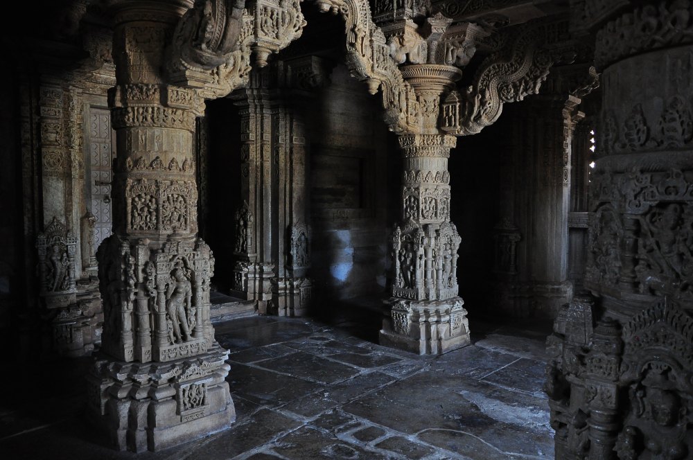 Le toit du mandapa, hall de prières, est soutenu par de magnifiques colonnes sculptées représentant des scènes du Ramayana, l’épopée fondatrice indienne.