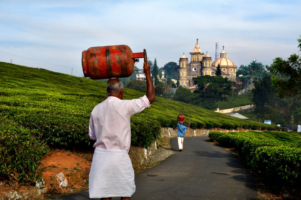 Corvée de gaz. Ces Indiens travaillent pour une grande exploitation de thé.