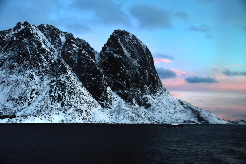 Les côtes des Iles Lofoten, sauvages, austères et très découpées se dressent parfois comme un mur devant le bateau.
