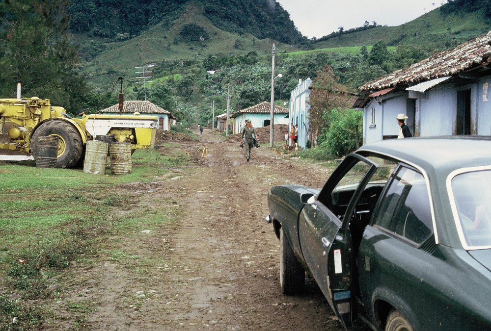 Entrée d’un village. On se renseigne pour savoir si la piste est ouverte. Oui, le bulldozer revient de la montagne. Ca passe !