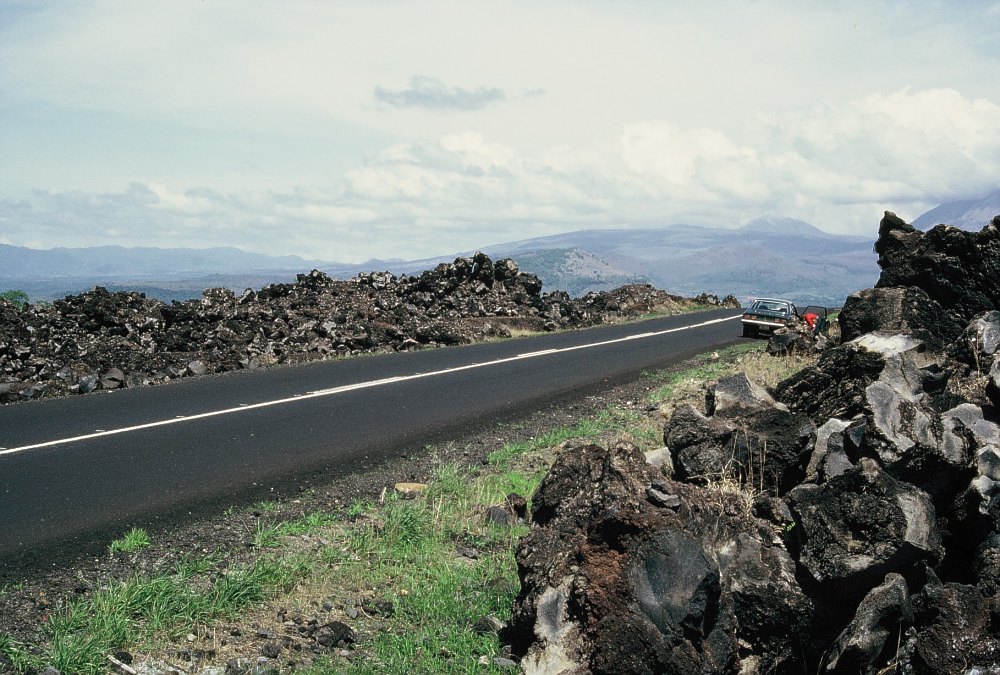 Une partie de route toute neuve pour traverser une coulée de lave.