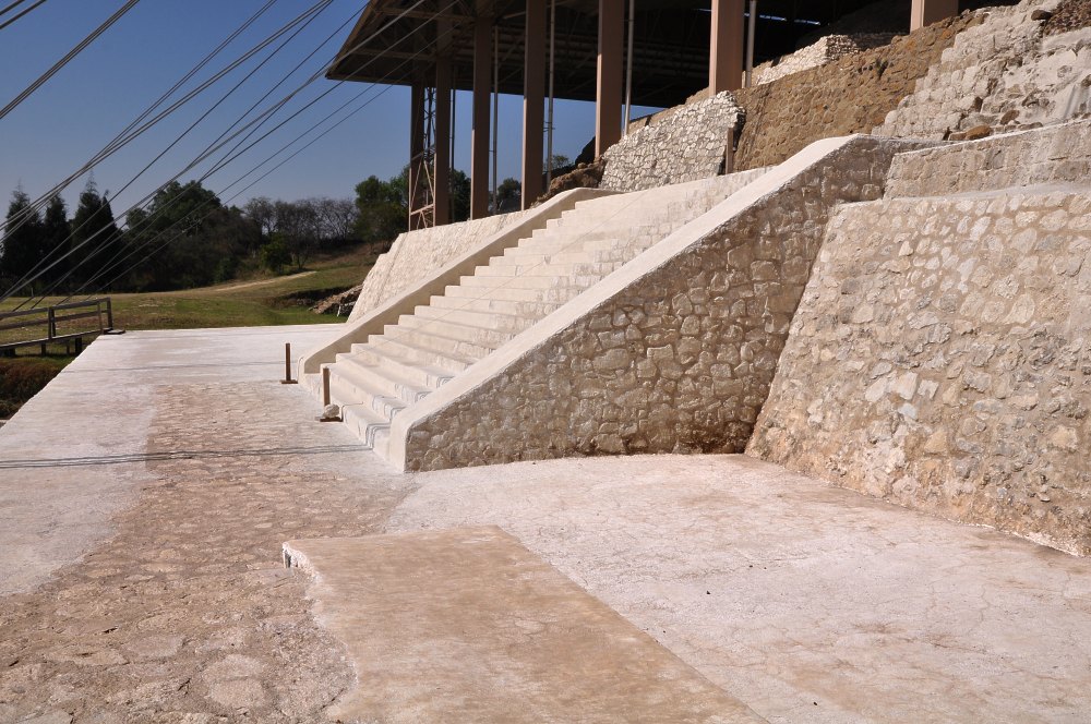 Le site archéologique de Cacaxtla se trouve à 35km au nord-ouest de la ville de Puebla. La partie principale des fouilles est protégée par une immense toiture peu esthétique. C’est le prix à payer pour garder sur place, en les préservant, les précieuses peintures murales qui ont été découvertes ici.