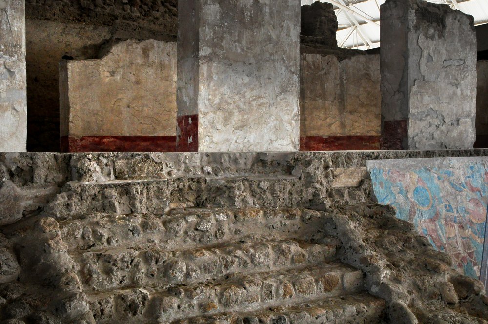 L’escalier central de la Place Nord avec, à droite, le Mur des Batailles.