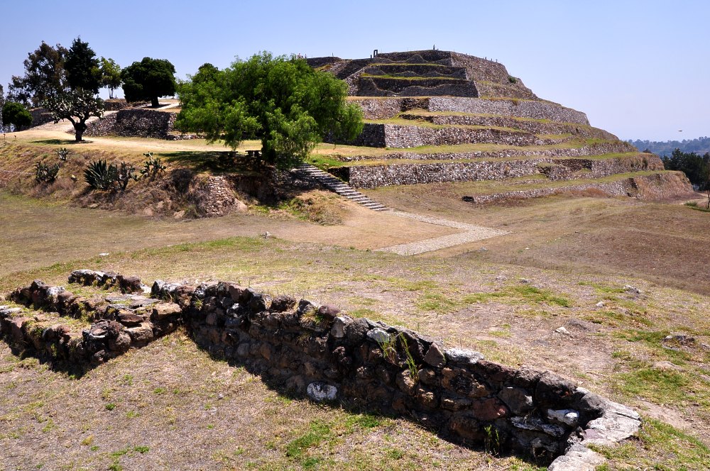 La cité de Xochitecatl est perchée sur les restes d’un ancien volcan, face au site de Cacaxtla. Les deux villes ne sont séparées que d’un kilomètre. La pyramide des Fleurs, visible ici, est l’un des édifices les plus anciens du site. Sa construction remonte à l’an 800 ans avant Jésus Christ.