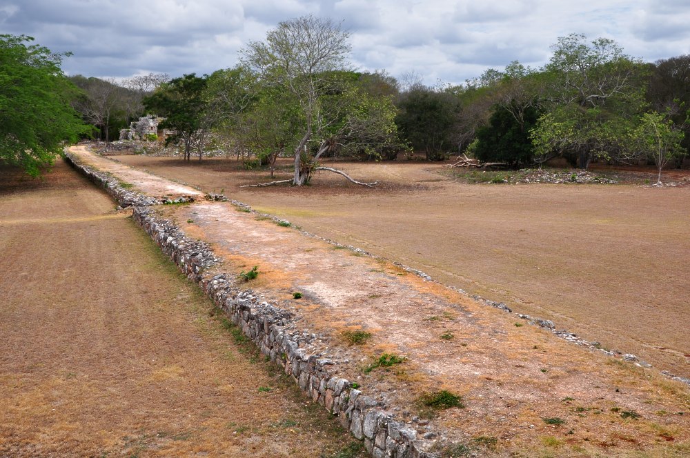 Le sacbé principal. Ces voies surélevées reliaient les diverses cités maya au travers de la jungle. Il faut les imaginer au milieu d’une dense forêt et surplombant des marécages qui, autrement, auraient rendu les communications impossibles.