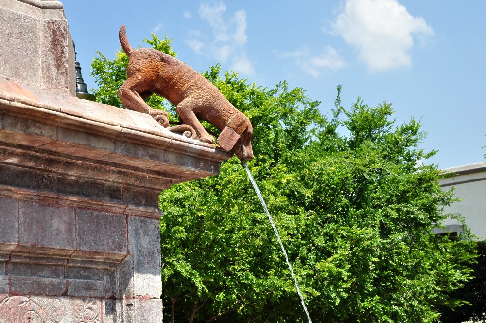 Détail de la fontaine érigée sur la Plaza de Armas en commémoration de l’arrivée de l’eau potable en ville.