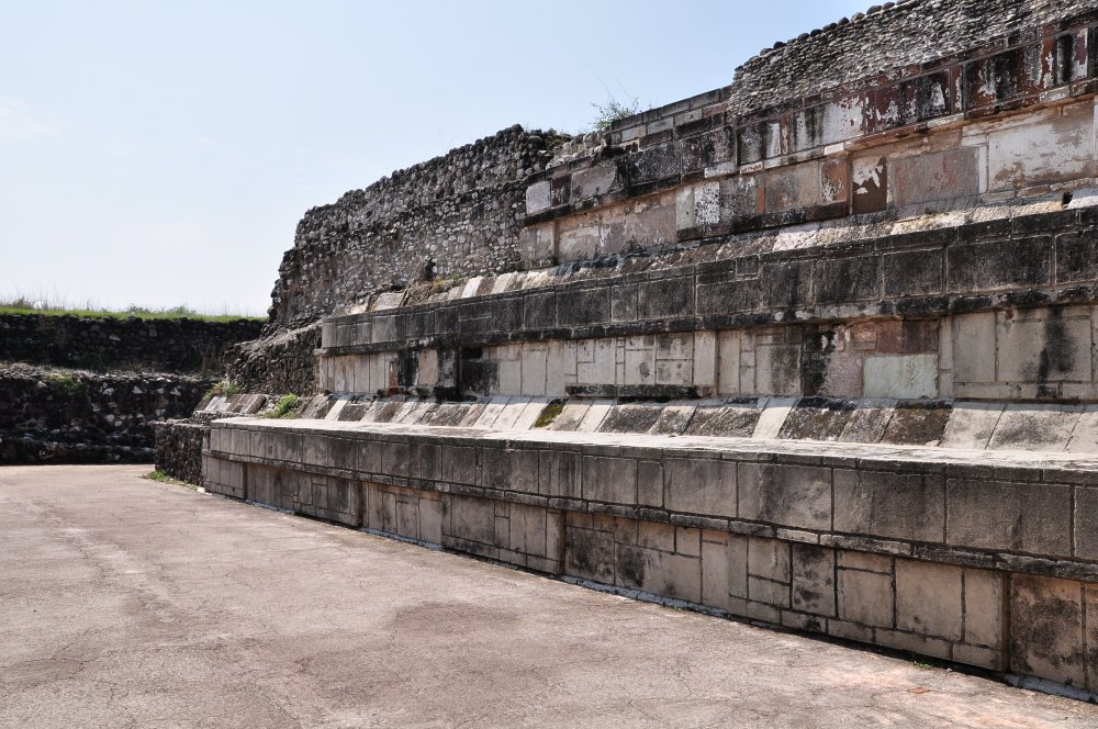 La base du Temple de Tlahuizcalpantecuhtli, la pyramide la plus haute du site.