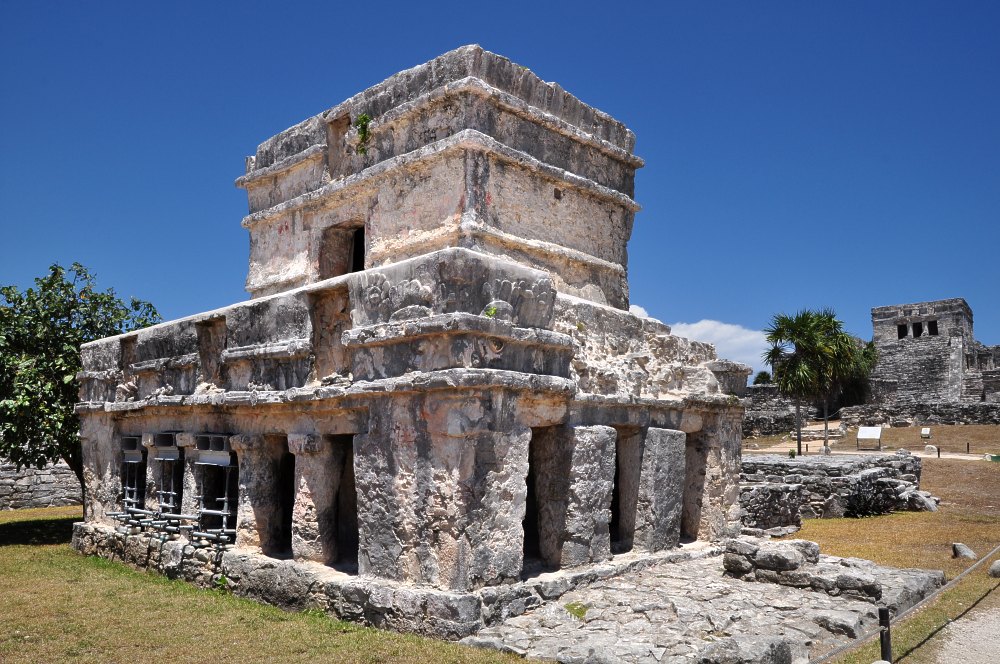 Le Temple des Fresques avec, en fond, le Castillo.