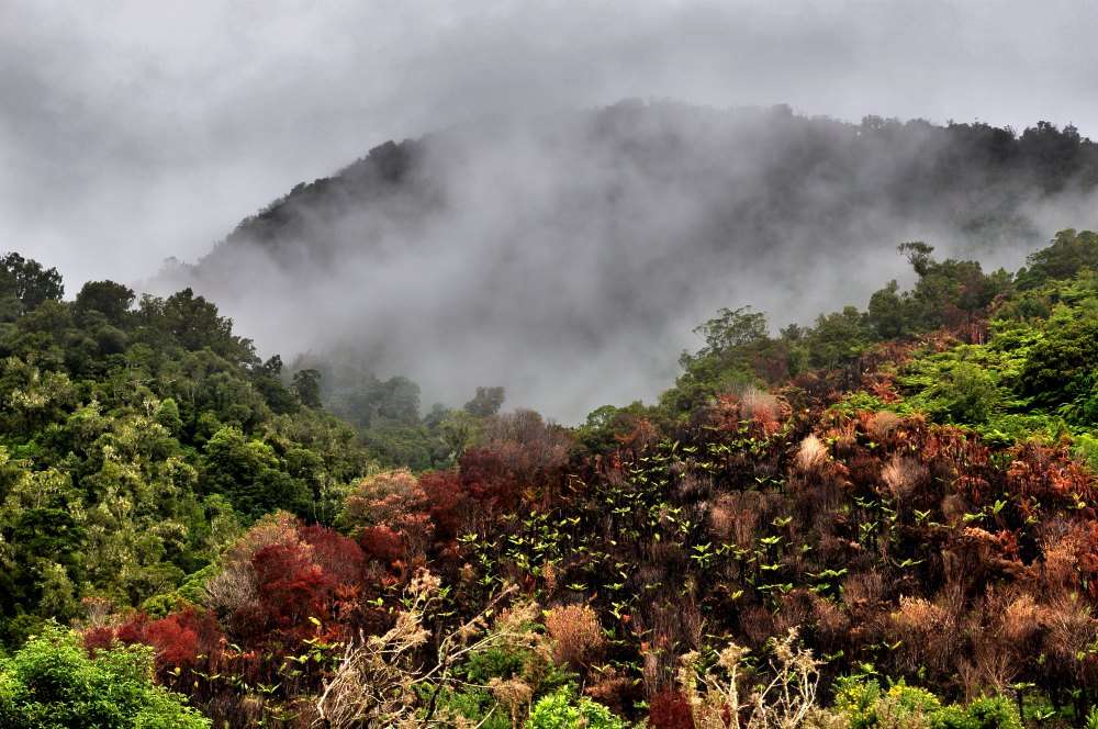 Porter’s Pass, 936m d’altitude, est le point le plus haut de la route 73 mais Arthur’s Pass avec seulement 920m en est cependant le lieu emblématique car c’est là que s’opère le basculement météorologique entre l’est et l’ouest. Il peut faire un soleil radieux d’un côté du col alors qu’il pleut à torrents de l’autre côté. Dans tous les cas, le col lui-même est occupé par le brouillard.