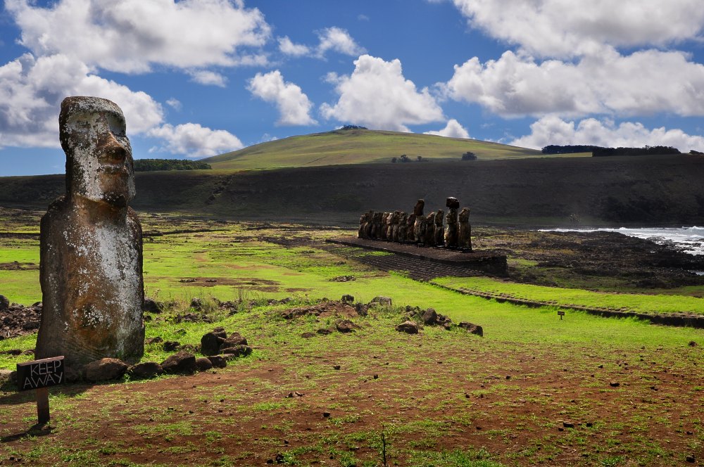 Ahu Tongariki es el sitio ceremonial más grande de la Isla Rapa Nui y se ubica entre las caletas Hanga Nui y Hanga Hotu Iti, muy cerca del Rano Raraku.